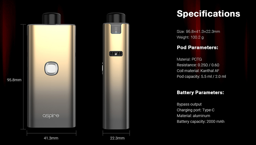 Pod Resistance: 0.25ohm, 0.6ohm mesh coil
