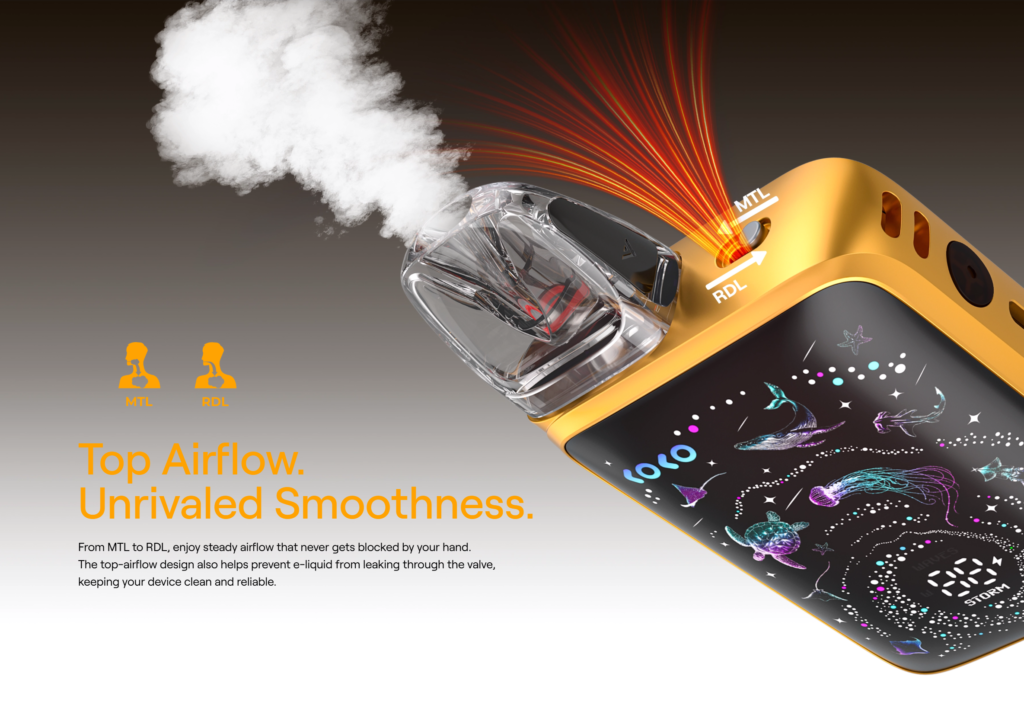 The top airflow design helps improve smoothness while also reducing the chance of leakage. This airflow structure contributes to a cleaner, more consistent draw and enhances overall comfort during use, especially for longer sessions.