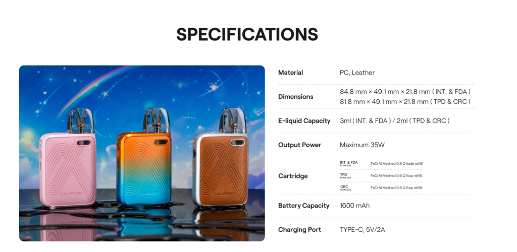 The Uwell Caliburn G5 KOKO Kit brings together practical features in a compact and user-friendly design. With a long-lasting battery, adjustable output, and smooth top airflow, it focuses on reliability and everyday comfort rather than exaggerated performance claims. For users seeking a dependable and easy-to-use device, the Caliburn G5 KOKO is a well-balanced option worth considering.
