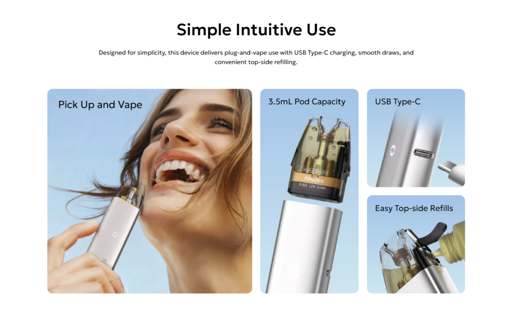 Featuring a 3.5ml pod capacity with top-side filling, the Foretex makes refills quick and mess-free. The design ensures a hassle-free experience while maintaining a compact form factor.