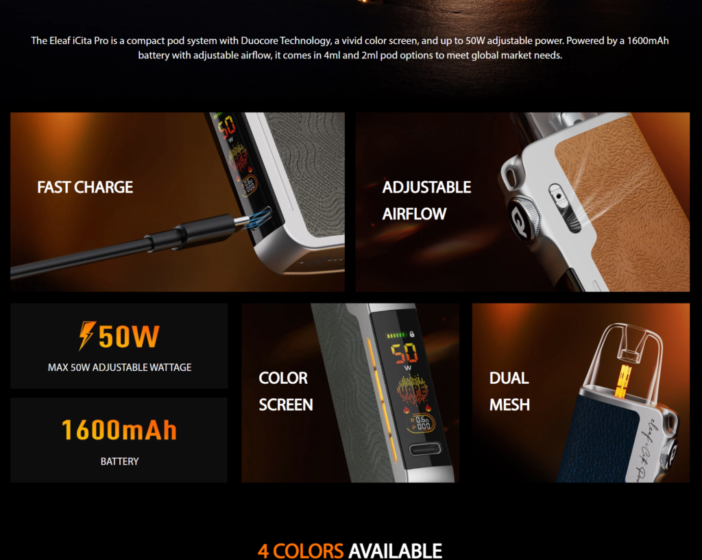 Overall, the Eleaf iCita Pro Pod Kit offers a well-rounded mix of convenience, performance, and battery strength—making it an excellent choice for anyone looking to upgrade their portable vaping setup.