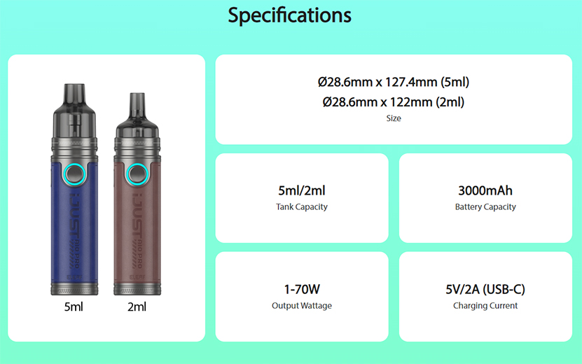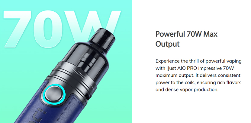 The iJust AIO Pro Kit is a sophisticated all-in-one vape pen kit that is powered by a built-in 3000mAh battery with a maximum output of 70W and USB Type-C charging to provide you with a smooth vaping experience throughout the day.
