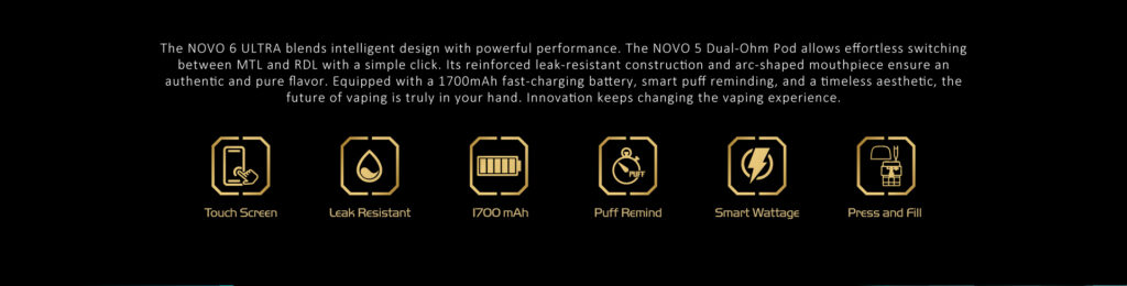 Novo 6 Ultra supports dual ohm options with dual meshed pod coils, allowing users to fine-tune their preferred balance between flavor and vapor output. This flexibility makes the device suitable for different usage habits without needing complicated adjustments.
