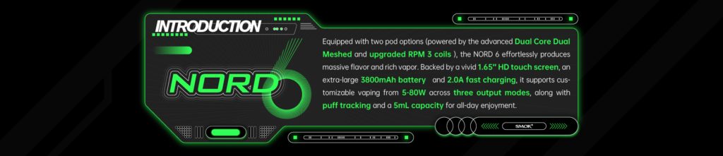 The SMOK Nord series has long been known for balancing portability and performance, and the SMOK Nord 6 Kit continues this direction with several notable upgrades. Featuring a larger touch screen, a higher-capacity battery, and improved coil technology, the Nord 6 is designed for users who want more control and reliability in a compact pod system without unnecessary complexity.