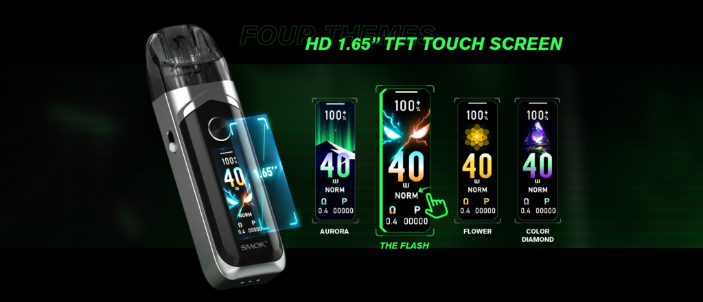 One of the most visible updates on the SMOK Nord 6 Kit is the 1.65-inch HD touch screen. Compared to traditional button-based displays, the touch interface offers clearer information and easier navigation. Users can quickly check wattage, battery level, resistance, and puff data, making daily operation more straightforward and intuitive.