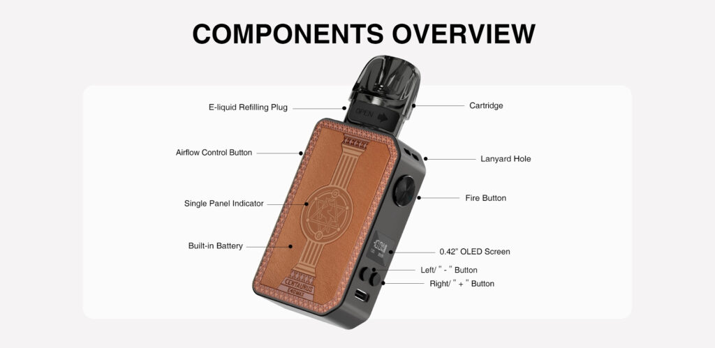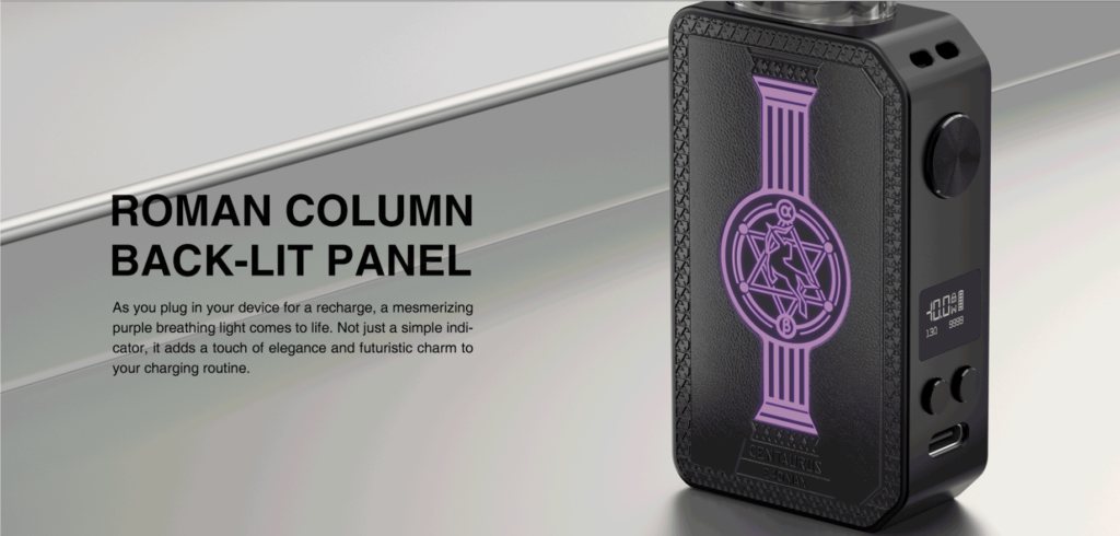 Adding a touch of magic to your vaping routine, the Centaurus E40 Max Kit features a mesmerizing Roman column back-lit panel. This unique design element not only enhances the visual appeal of the device but also reflects its blend of classical elegance and modern innovation.