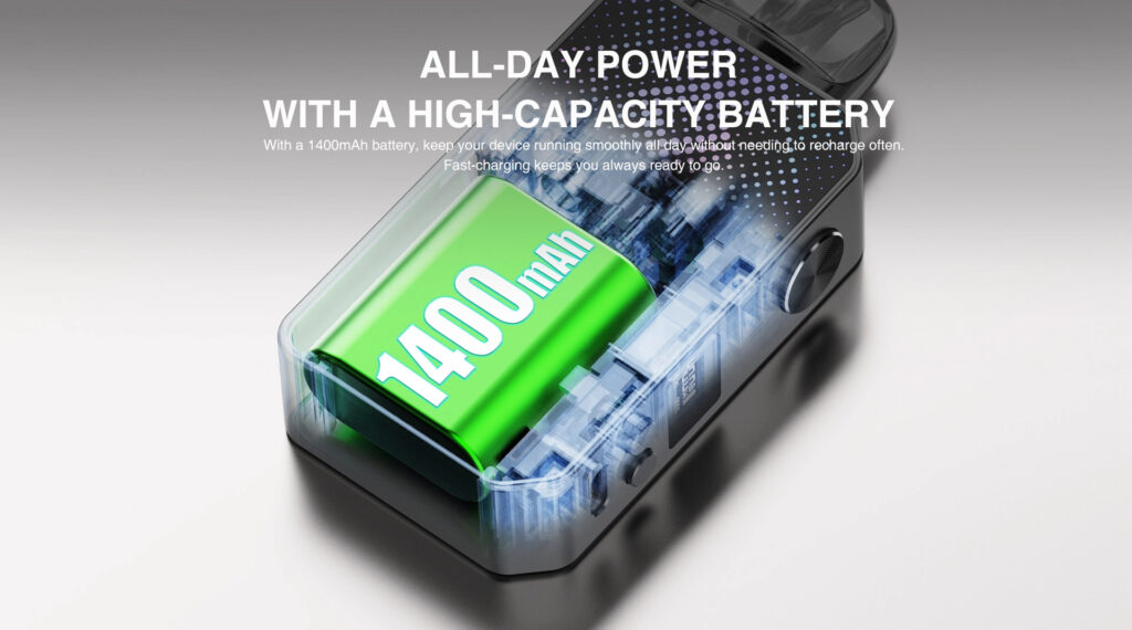 Powering the Lost Vape Centaurus E40 Max Kit is a robust 1400mAh battery. This high-capacity battery ensures that your device runs all day, so you can vape without interruption. Whether you’re at home or on the go, this kit has got you covered.