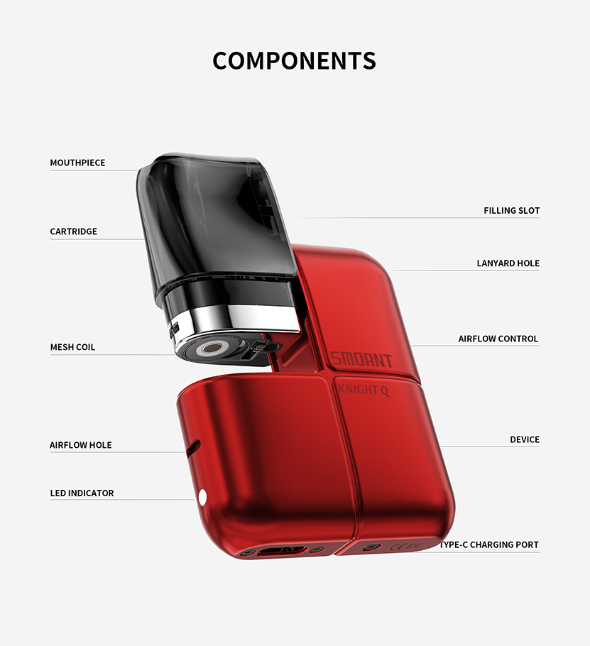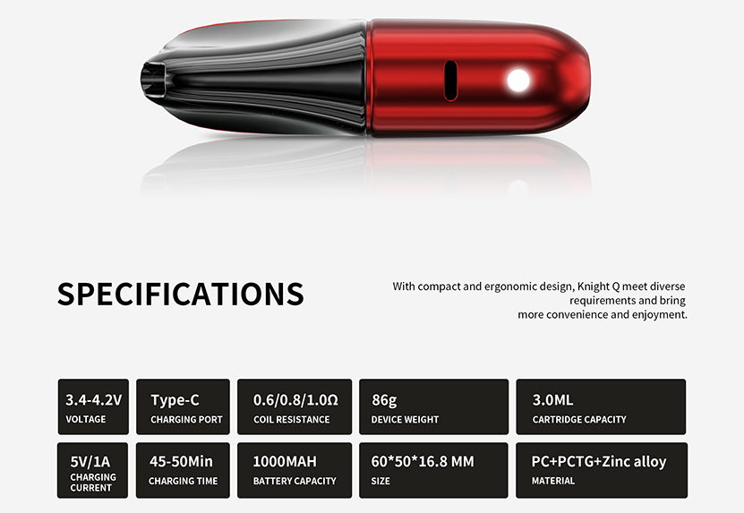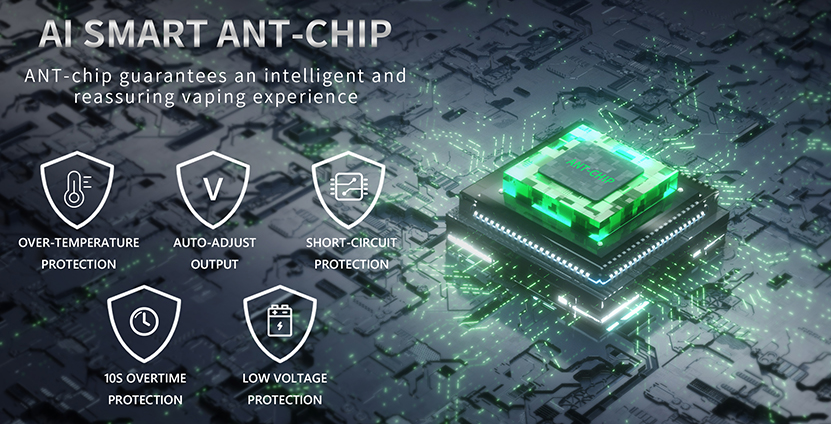 The Knight Q Kit is driven by a built-in 1000mAh battery that charges via Type-C. With the help of the AI SMART ANT-Chip, you can feel more certain about your vaping experience. The bottom airflow adjustment system allows you to further tailor your vaping experience.