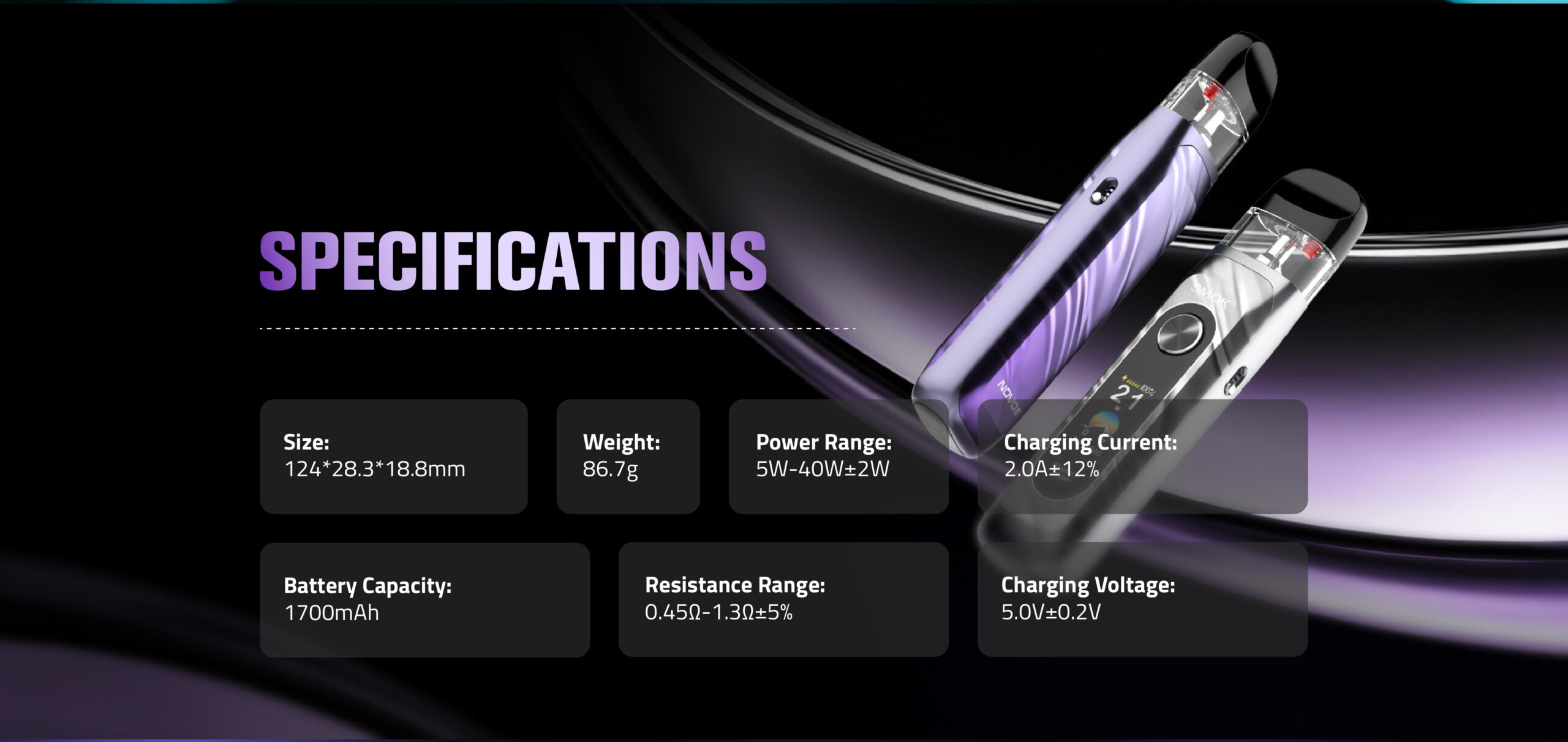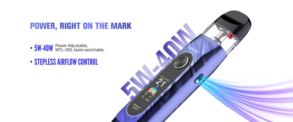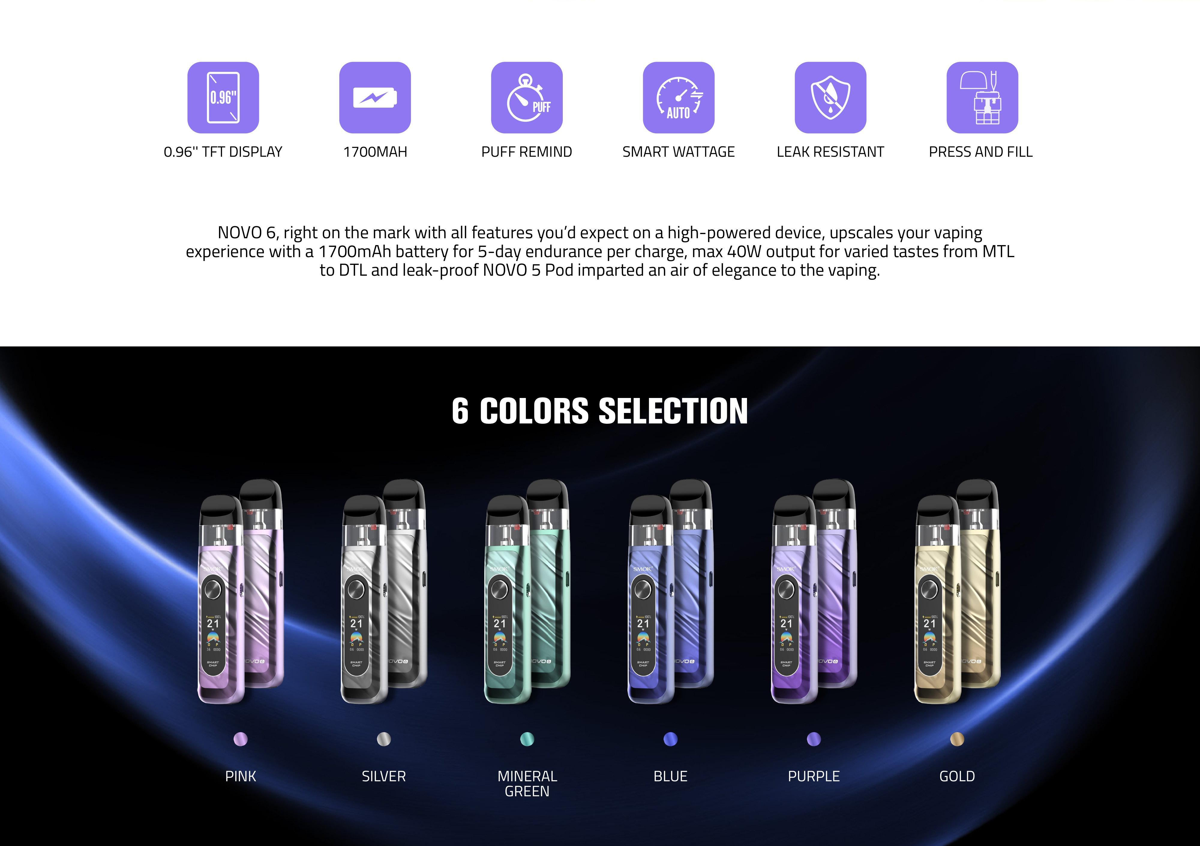 With a maximum output of 40W and adjustable airflow control, the Novo 6 offers flexibility for different vaping styles. Whether you prefer a tighter draw or a more open airflow, the device can be fine-tuned to match your preference.
