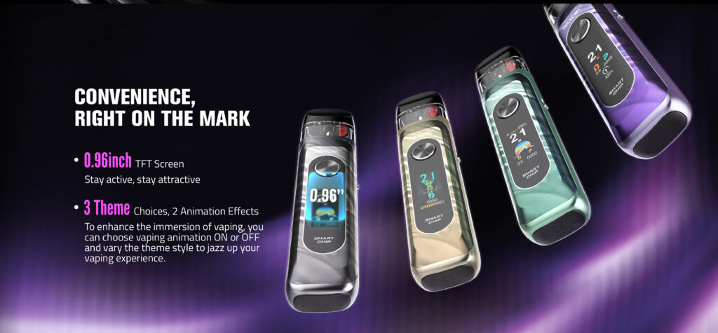 The addition of a 0.96″ TFT screen provides clear visibility of key information, such as wattage, battery level, and settings. This small but impactful feature gives users better control and awareness of their vaping preferences.
