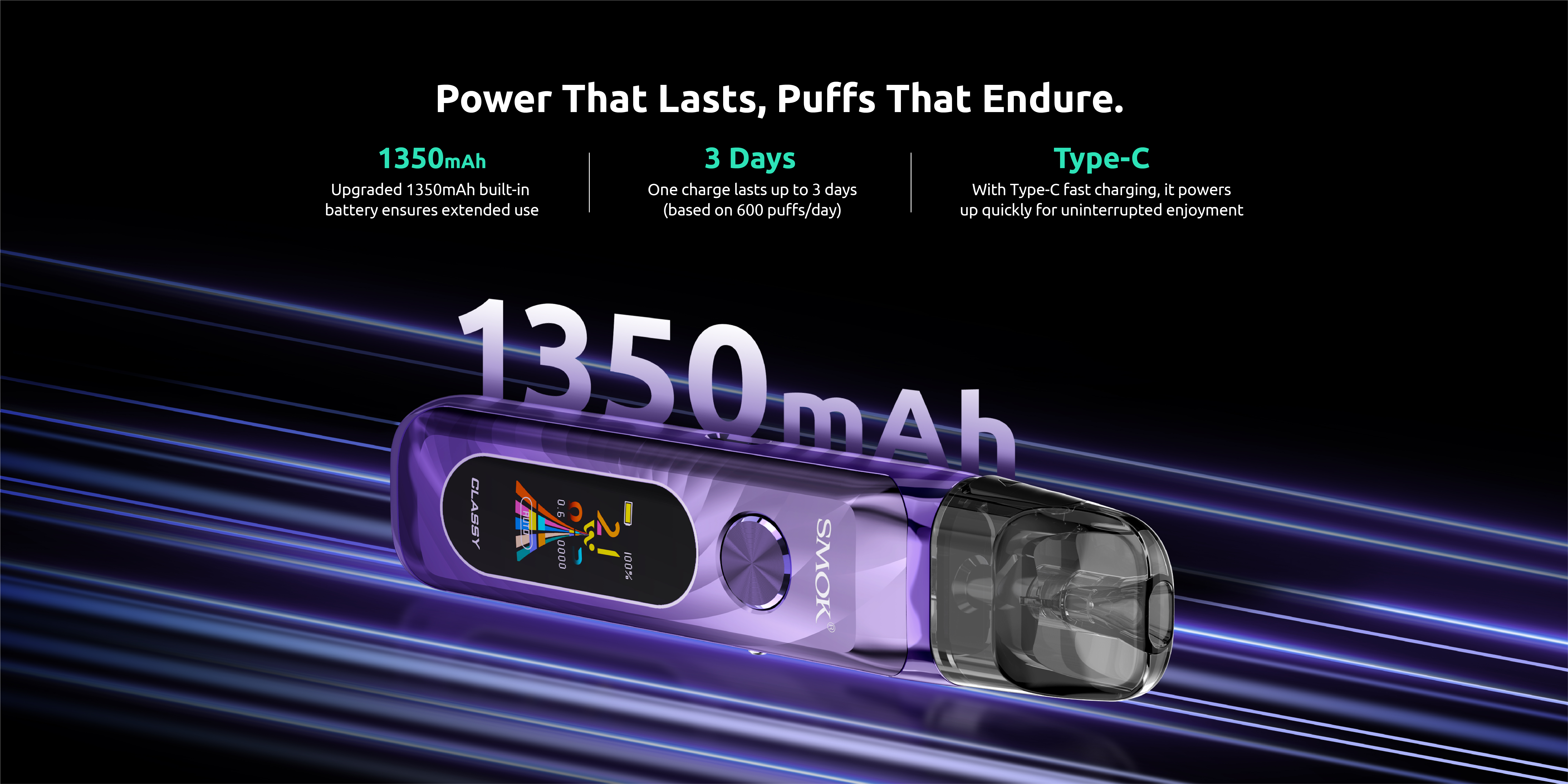 Power is another area where the NOVO Classy Kit shines. Equipped with a 1350mAh built-in battery, it supports extended vaping sessions without frequent recharging. Paired with modern Type-C fast charging, downtime is minimized, making the device ideal for on-the-go use. The combination of long battery life and efficient charging ensures that the device keeps up with daily demands.