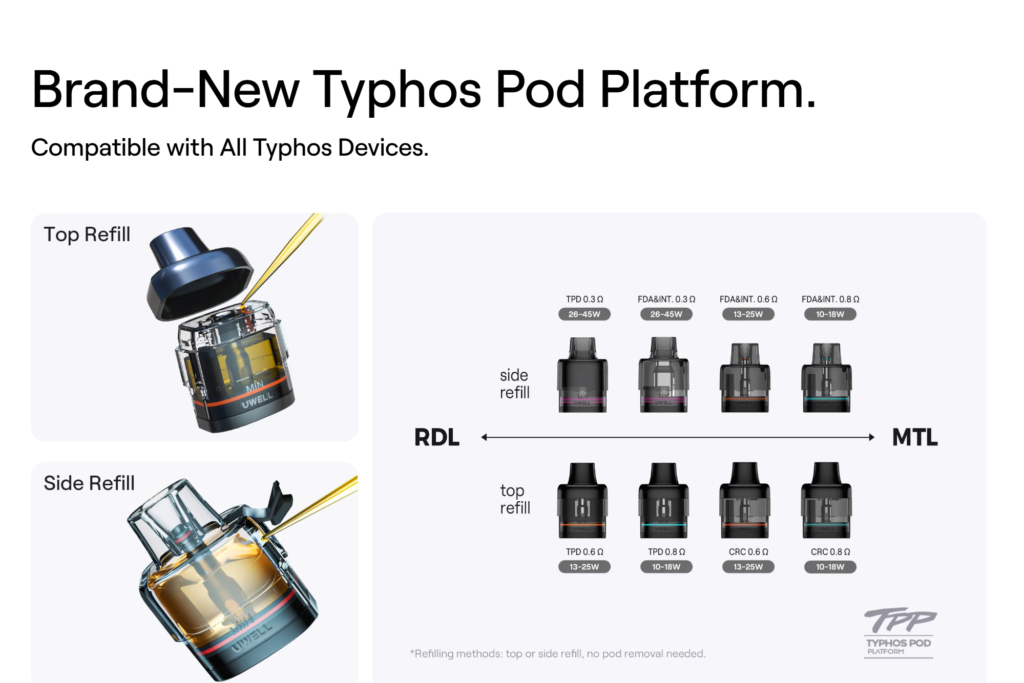 The Uwell Typhos SE Pod System Kit combines style, durability, and intelligent design to deliver a refined vaping experience. Whether you value taste, power, or comfort, the Typhos SE offers a balanced and dependable choice for everyday use.