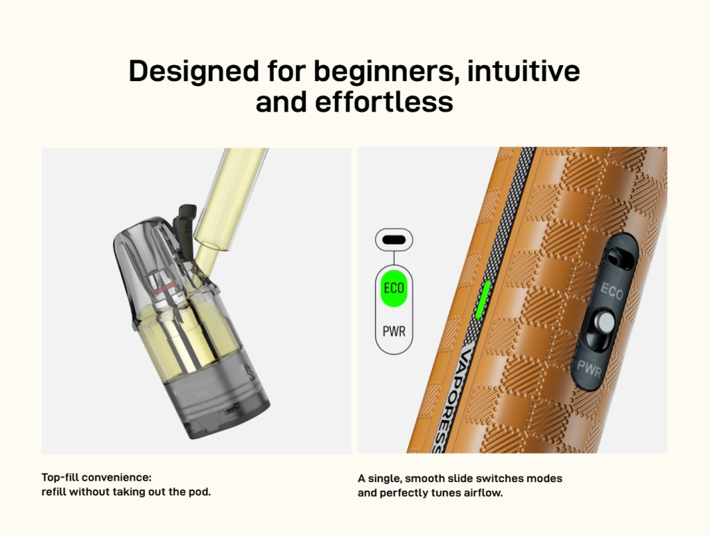 Featuring a top-fill design, the Vibe SE 2 Kit allows for quick and clean refills. The single switch system lets users fine-tune airflow easily, keeping adjustments simple without adding unnecessary complexity.