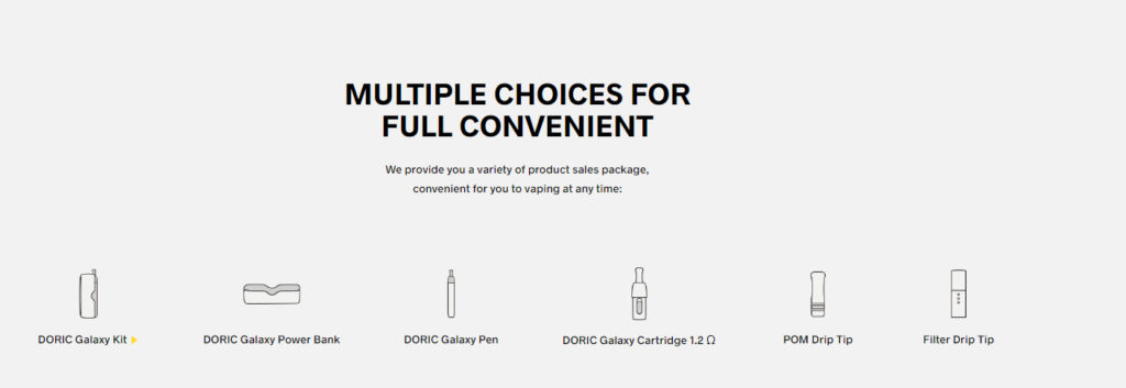 Doric Galaxy Kit blends fashion and technical innovation, powered by genuine flavor and an ingenious power bank. Its dual power system of 1800mAh for the Power Bank and 500mAh for the Pen can be fully charged and used for up to 100 hours of vaping.